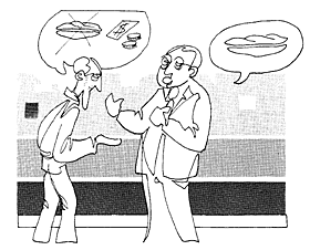 Pezeta batzuk eskuratzeko zazpi bokadillo jan behar izan ditudalako gaur arratsaldean. Ez, ez. Eskerrik asko. Bokadillorik ez.