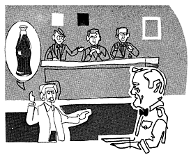 Eta niri esku-painu bat, mesedez, izerdia sikatzeko, ta Koka-Kola bat! Adan Aurpegi Adarragak bedelari, Berendiari kinu maltzur bat eginez.