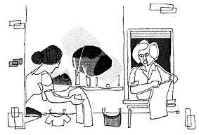 bi. Erropak eskegiten..., eta leihotik leihorako alkarrizketa gozatsuan.